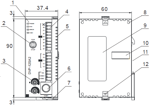 در تصویر زیر میتوانید ابعاد این PLC دلتا مدل DVP12SA211R برند دلتا را مشاهده کنید: